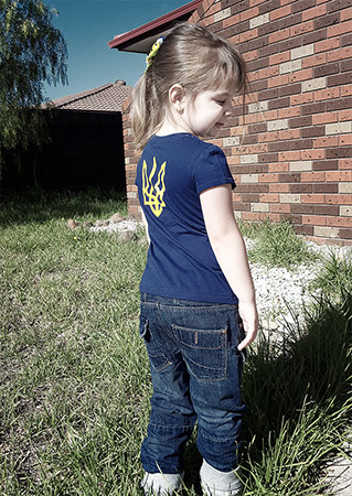 Перший дизайн є напис "Im Ukrainian" з поєднанням зображення серця та жовто-блакитного прапора. Також великий тризуб на зворотній стороні. Виконання в жовтому або в синьому кольорах.